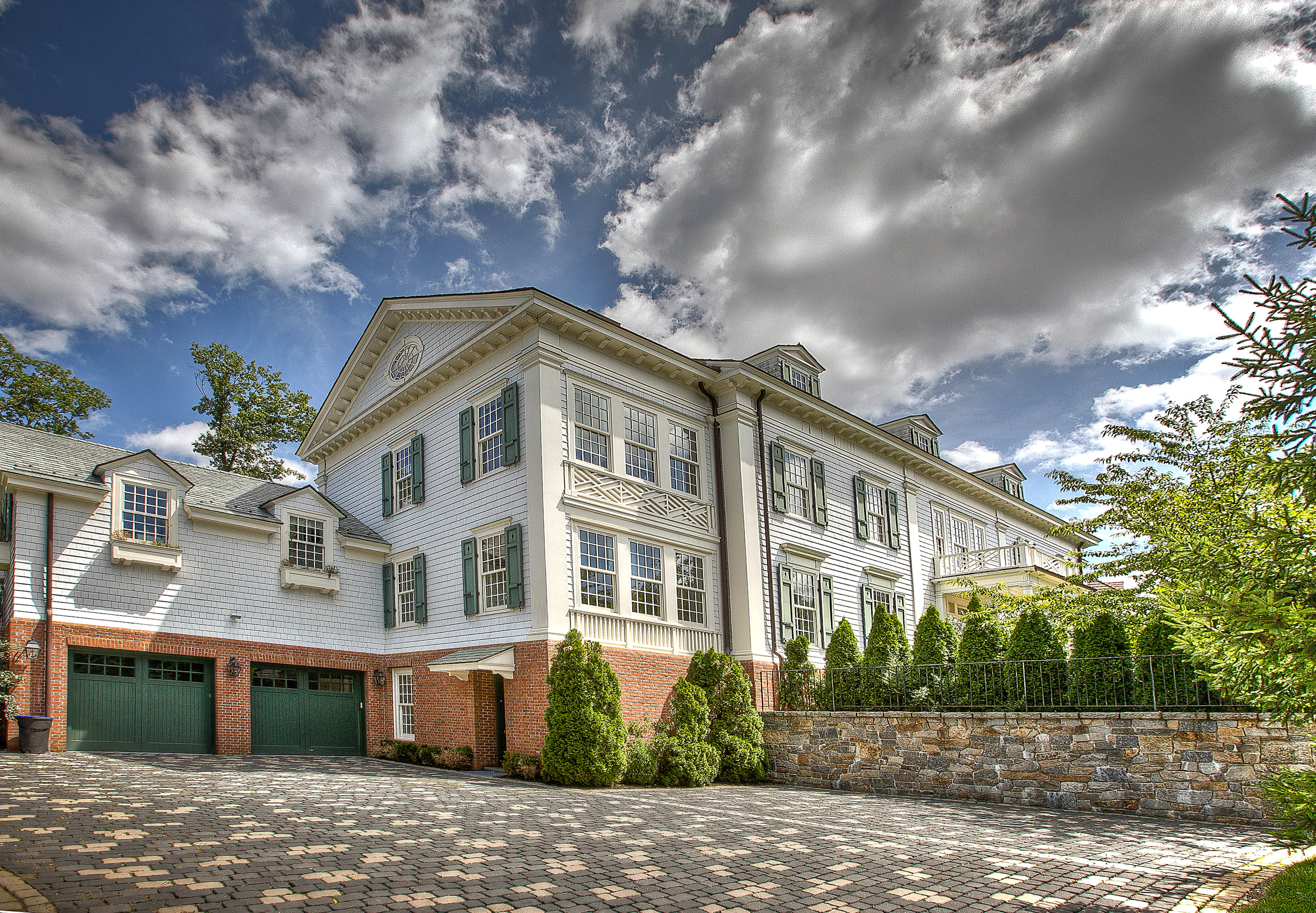 - Brick veneer and stained wood Shingle siding: Cedar shingles, with Cabot stain
