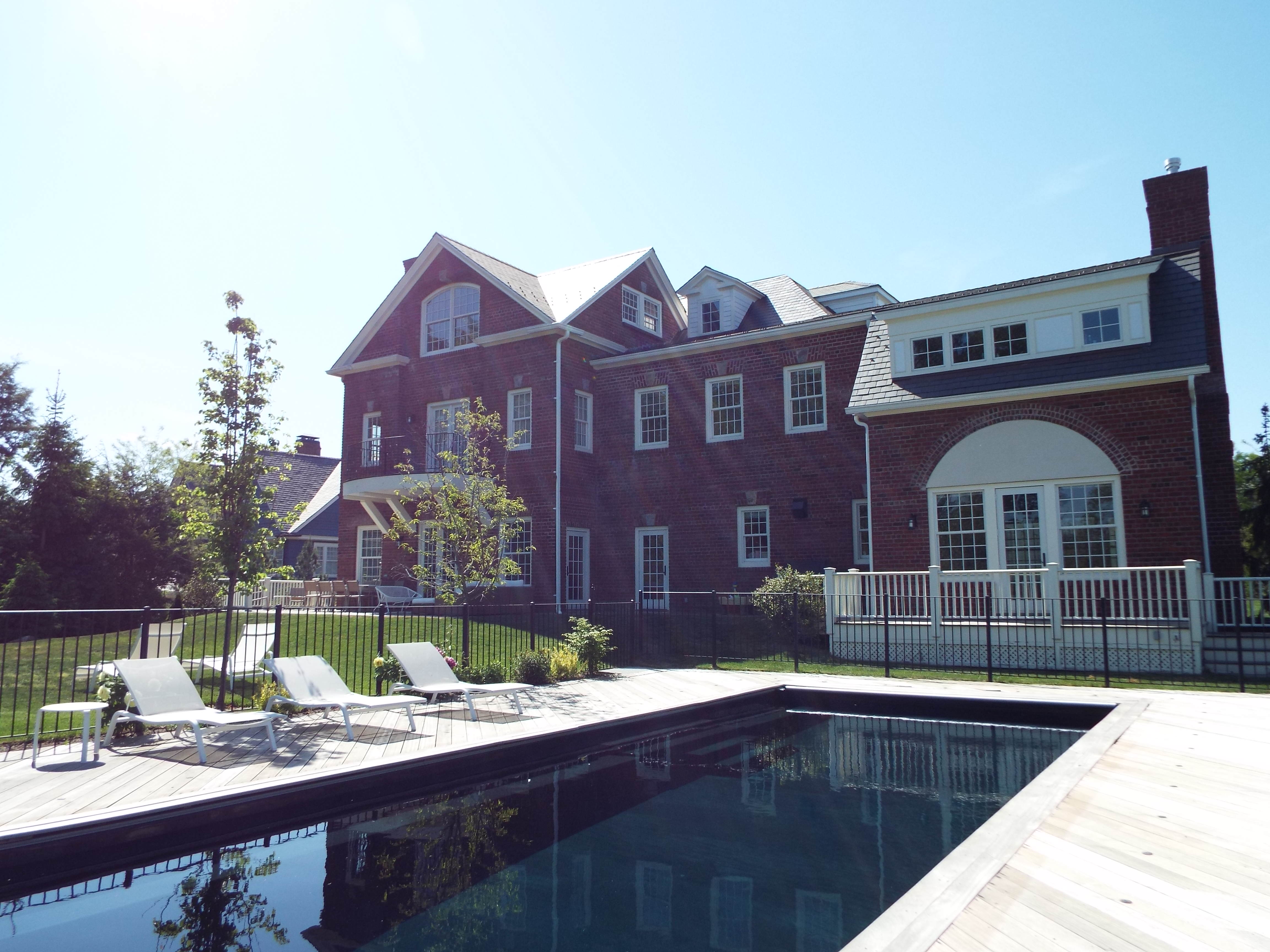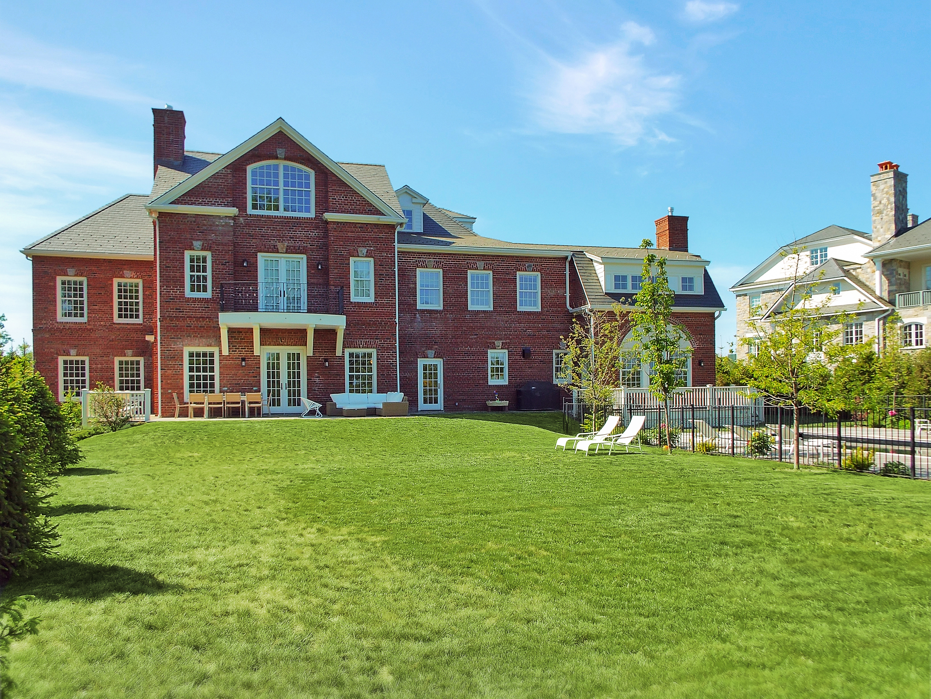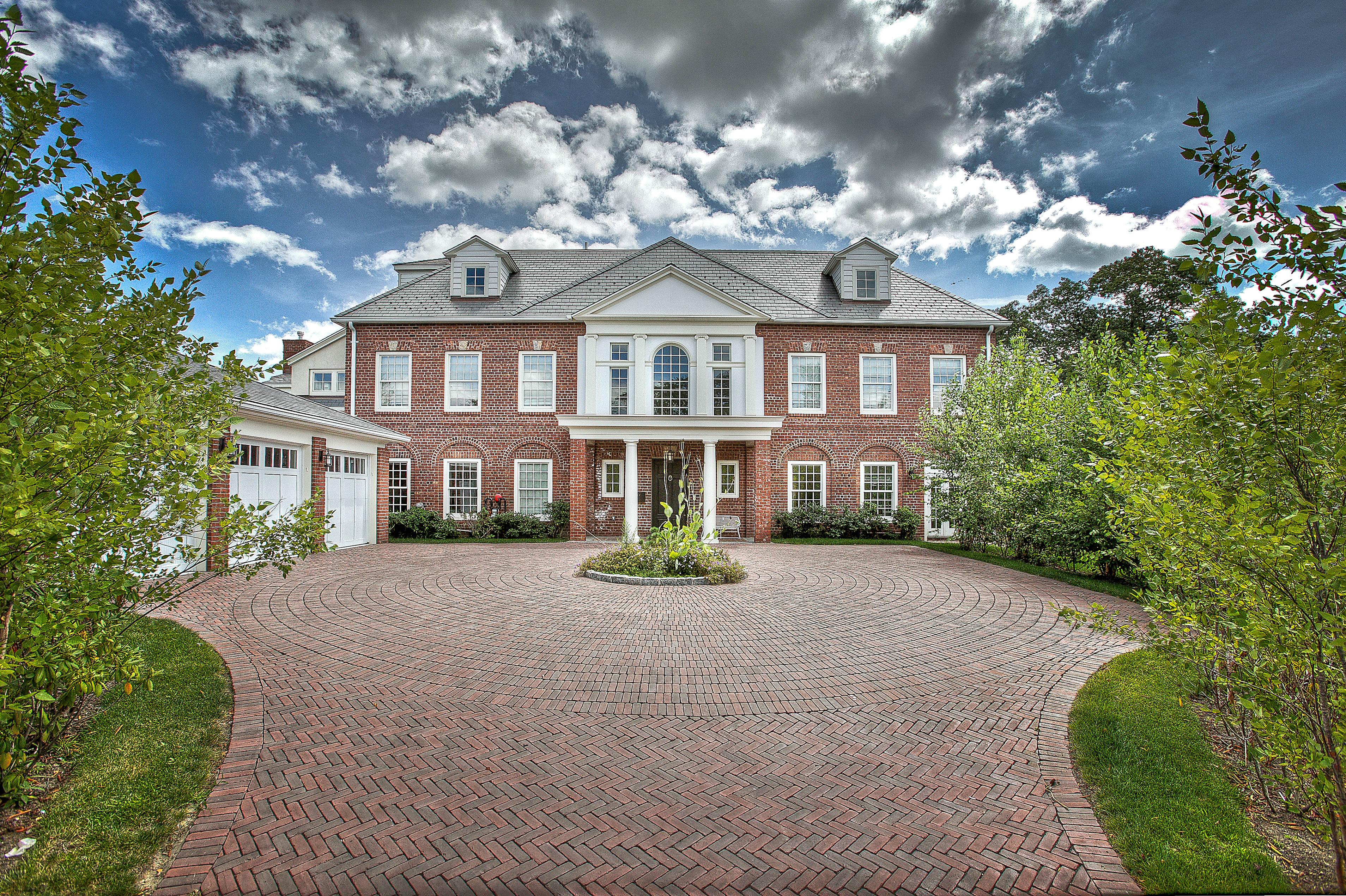 This is a grand neo-Georgian, based on some of the estate homes of the early decades of the twentieth century. A formal drive leads to a motor court and colonnaded porch. An elevator services all floors.