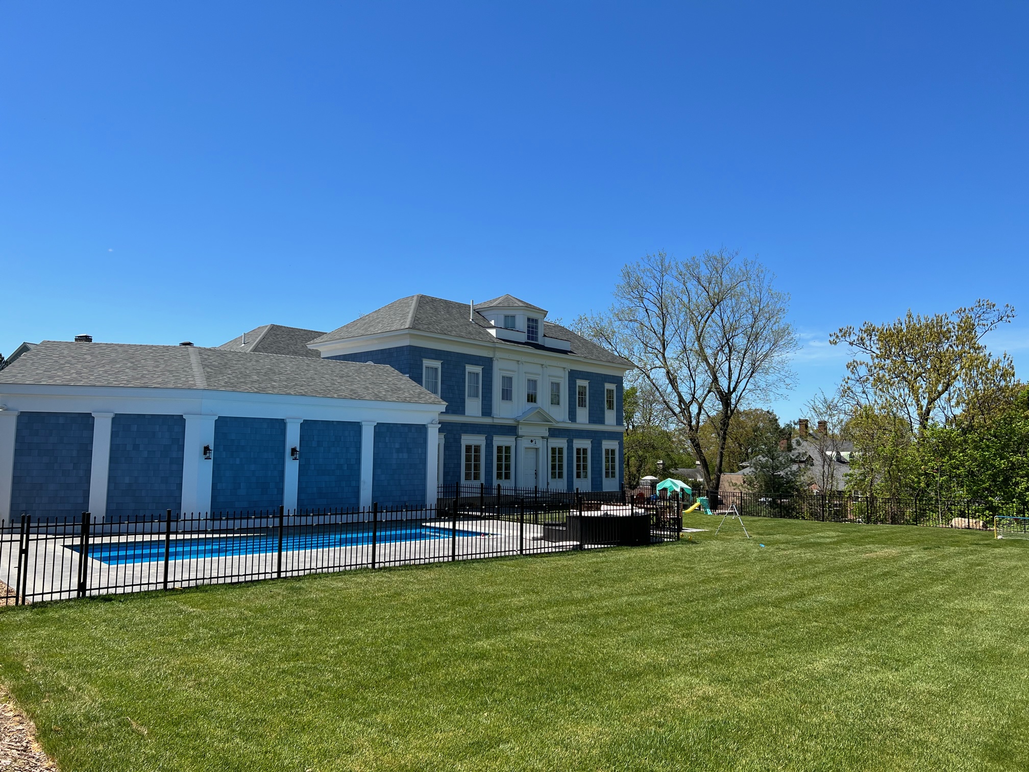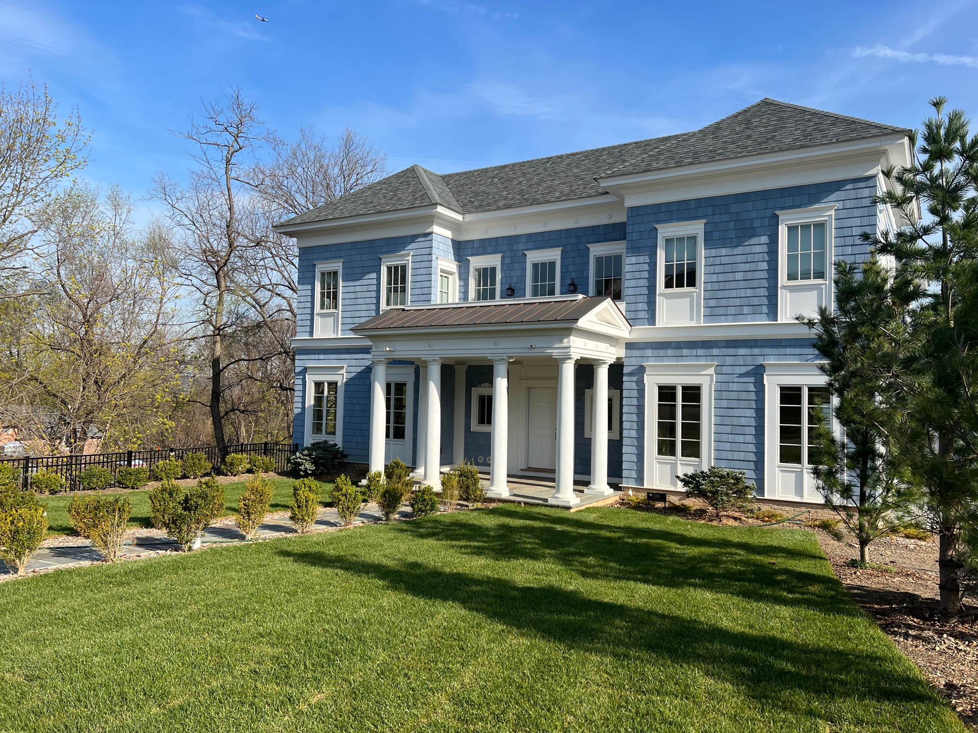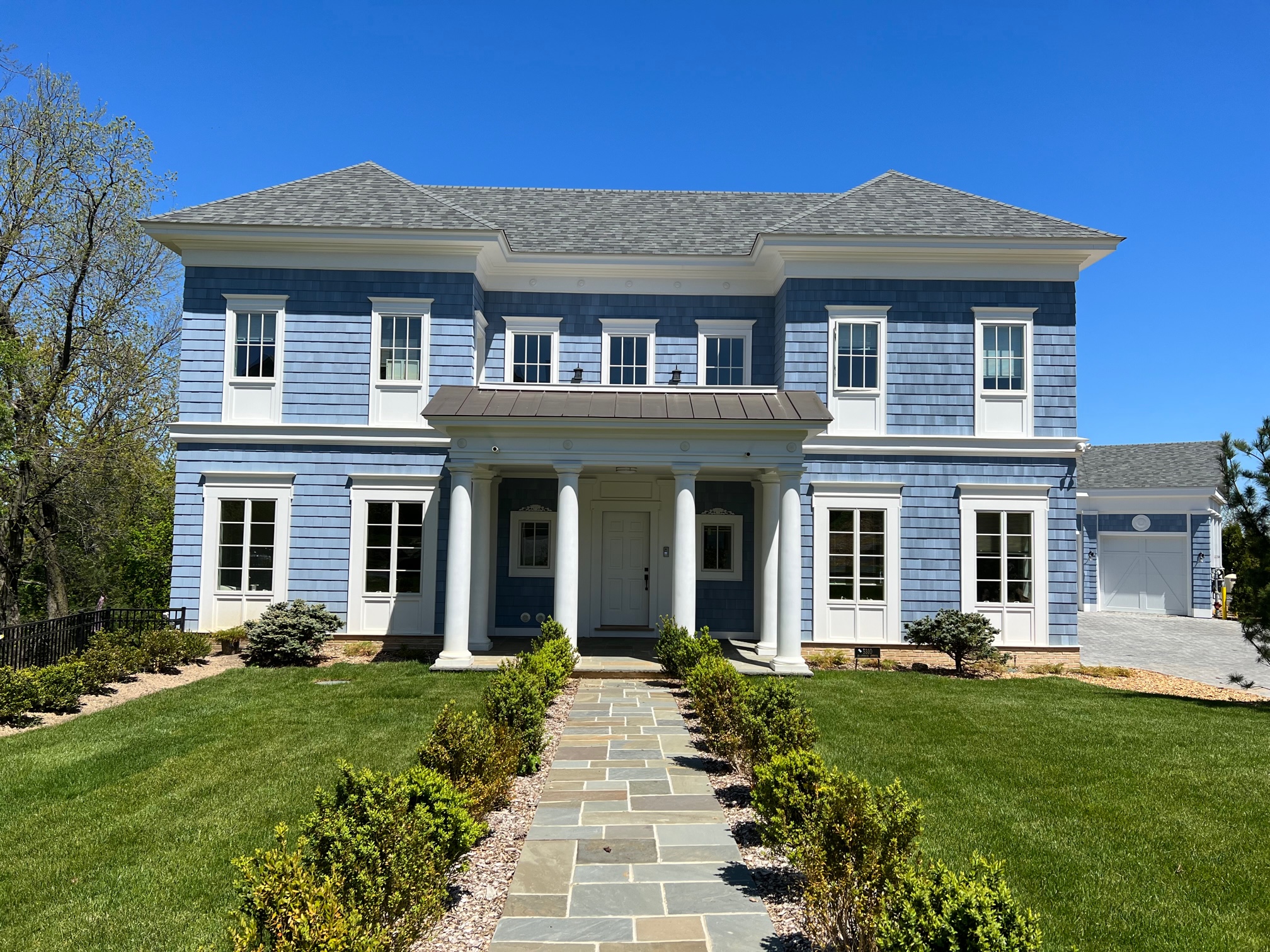 Set on a secluded tree top level lot, This shingle style house is designed in the tradition of American masters, Mead & White with continental classical influences, and designed to maximize privacy. The house can either be approached directly from the street through an expensive front porch or be a driveway into a private motor court leading to a separate entry porch or mudroom not visible from the road. The front double height foyer leads directly to a home office with its own door on to the motor court or the tall living room with a gas fireplace. Overlooking the backyard is the large eat-in kitchen and family room, and another bedroom suite or home office with a bath that also opens to the mud room to serve as the pool cabana. The wide main stair leads from the columns stair hall up to the second floor stair hall overlooking the open foyer. The master suite takes up the entire side of the floor with a sitting room, his and her closets, a five fixture bathroom and a dedicated Porch. Three more bedrooms are also on the floor. The penthouse contains three bedrooms with dramatic, tall ceilings.